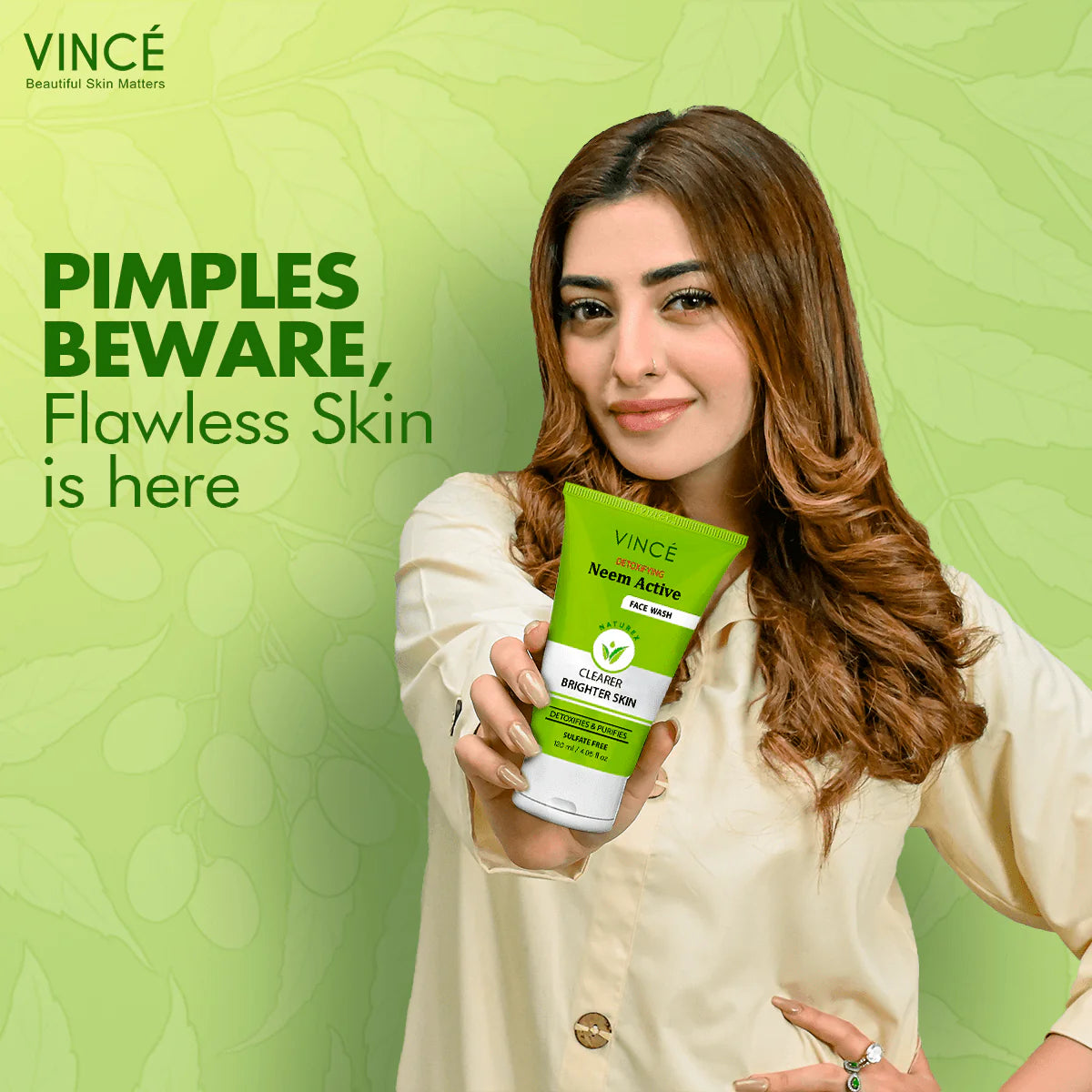 VINCE DETOXIFYING Neem Active face wash helps to slowdown acne process and removes acne scars & spots and skin becomes smoother day by day !